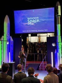 Van de Wetering beschrijft hoe Europa meer en meer op eigen benen moet gaat staan. Ruimtevaart kan aan deze autonomie een belangrijke bijdrage leveren ‘Laat deze omstandigheden ons inspireren om nog beter samen te werken’, roept hij op. ‘De Nederlandse politiek ziet het belang van ruimtevaart, en er zijn ambities. Nu is het aan óns om te leveren.’