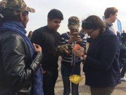 Lyceum in Hengelo. Zijn interesse ligt vooralsnog bij natuur- en sterrenkunde. Genoeg reden dus om overweg te kunnen met het verzamelen en analyseren van data. Even verderop zegt Gopal (16) vooral geïnteresseerd te zijn in lucht- en ruimtevaart. In afwisselend vloeiend Nederlands en Engels geeft hij tekst en uitleg over de secundaire missie van het team van de Amsterdam International Community School; het berekenen van de windsnelheid aan de hand van gps-data.